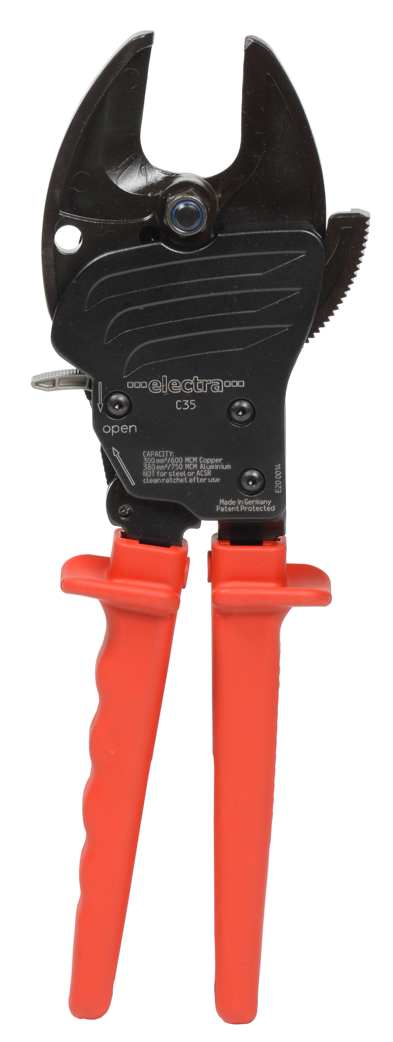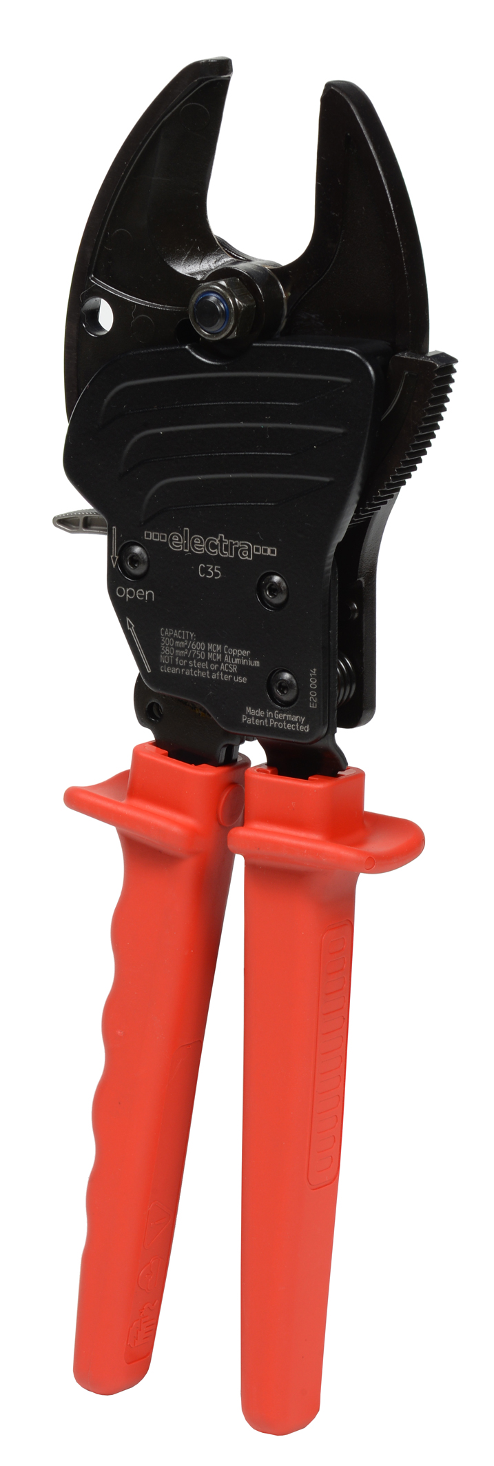 Cięcie z systemem zapadkowym. Krok po kroku pozwala na łatwe przecinanie grubych kabli.