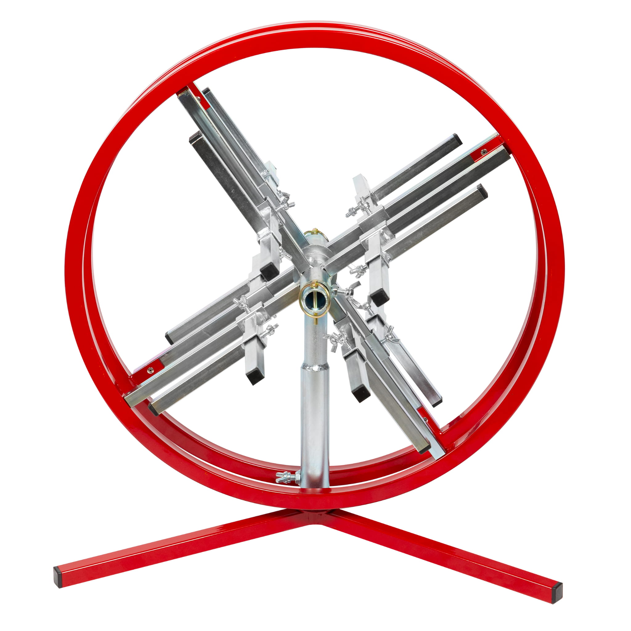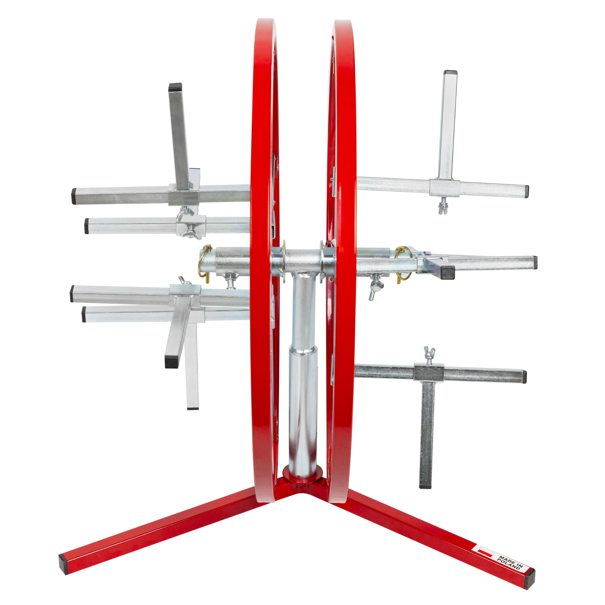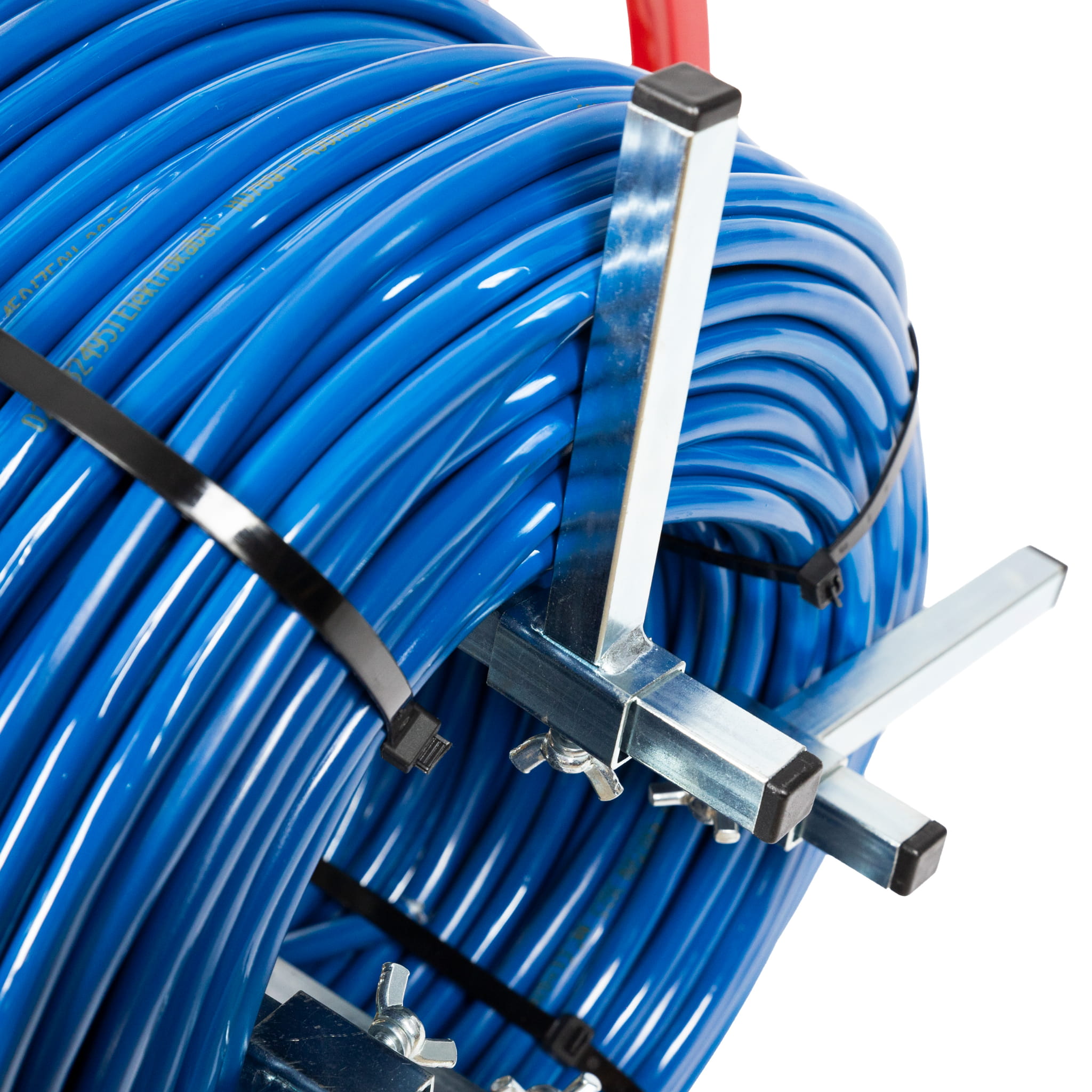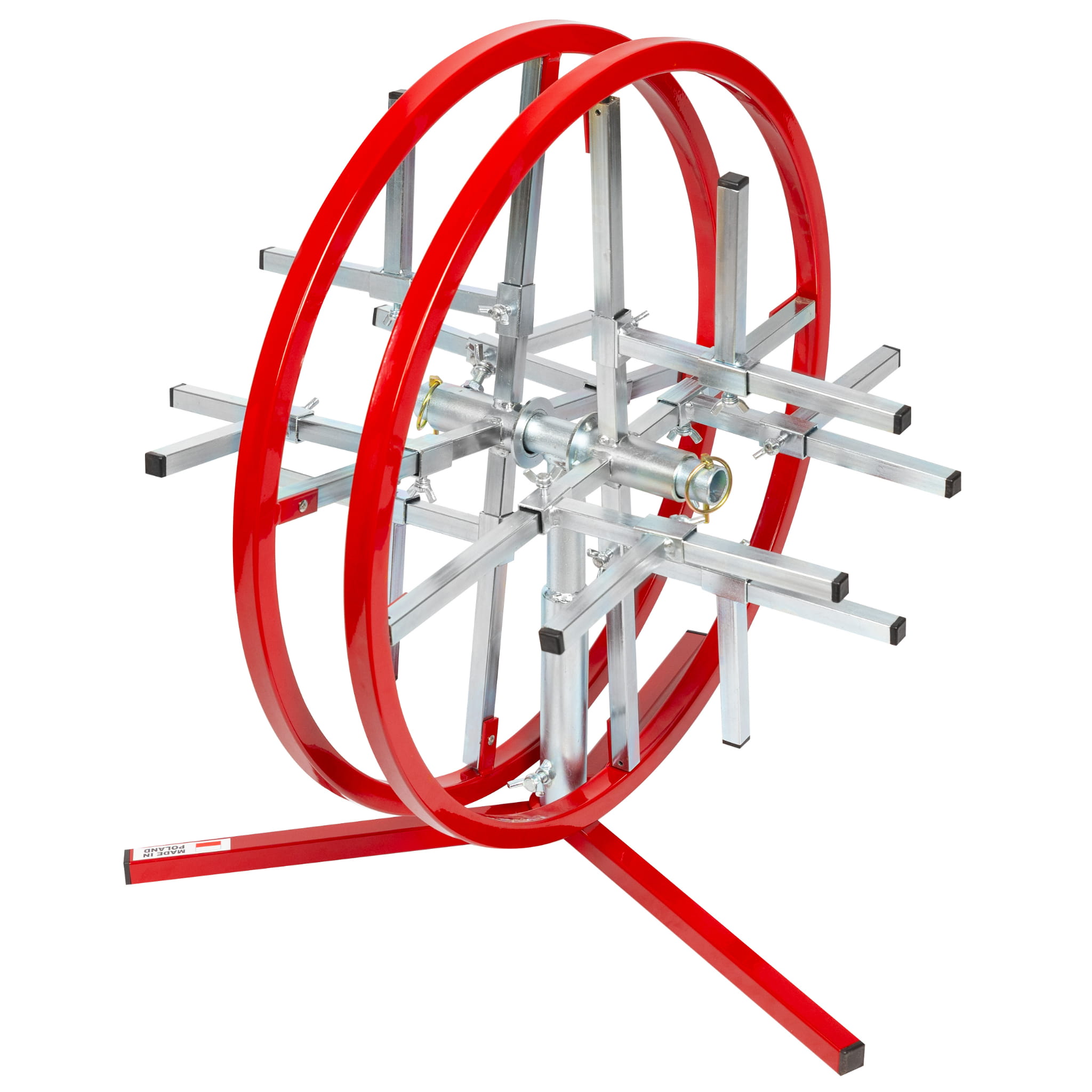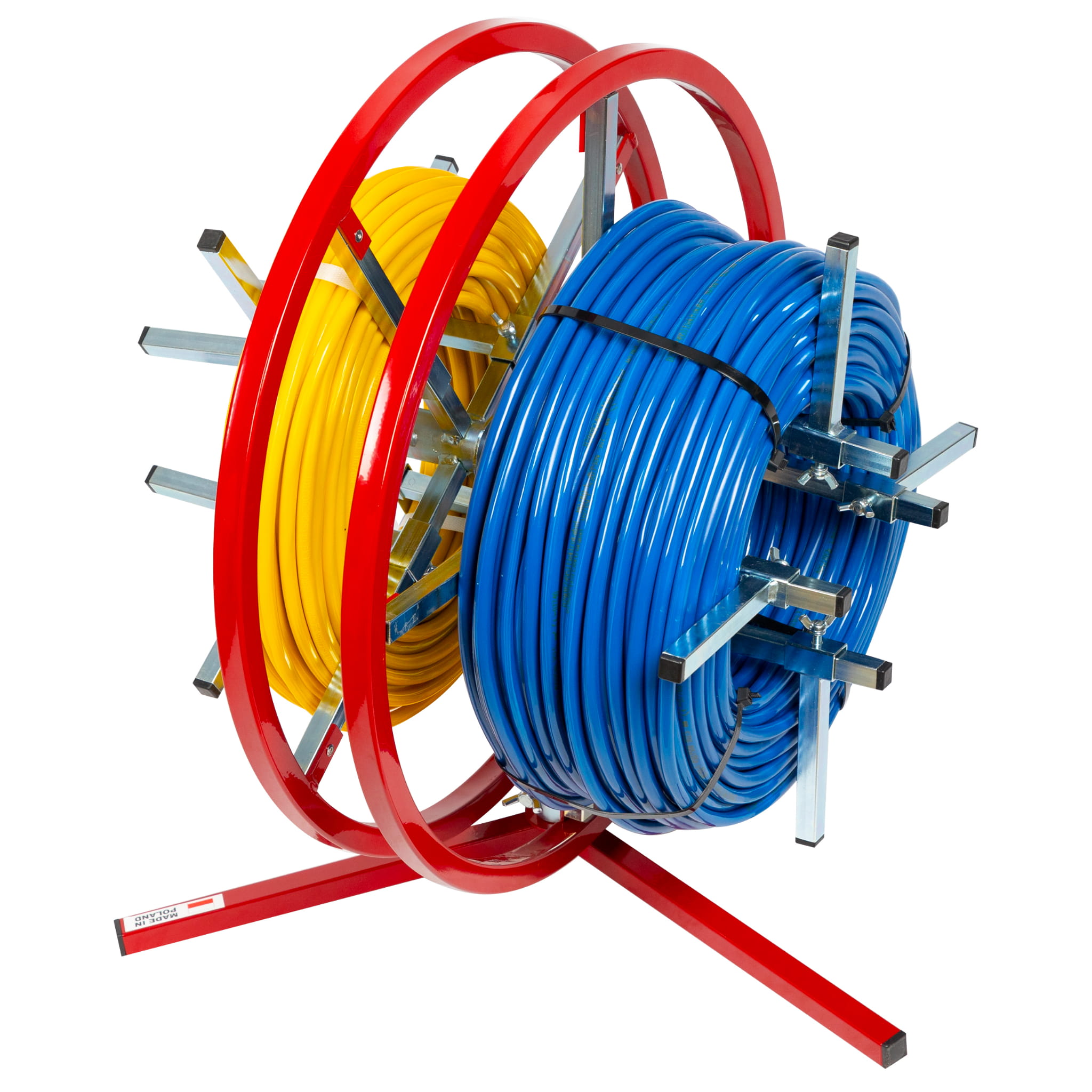 Rozwijak uniwersalny, podwójny pionowy to rozwijak do kabli (kołowrotek do przewodów). Jest to nowoczesne urządzenie zaprojektowane dla specjalistów, instalatorów sieci elektrycznych, komputerowych i telekomunikacyjnych jak również dla amatorów. Urządzenie to w prosty sposób ułatwia prace monterów instalacji elektrycznych. Jeżeli masz dość plątających się kabli, jeżeli masz dość przestawiania szpuli kablowych z miejsca na miejsce aby zapewnić sobie jak najlepsze ich rozprowadzanie, to urządzenie jest właśnie dla ciebie. Dzięki różnorodnym konfiguracjom urządzenie to można dostosować do indywidualnych potrzeb elektromontera. Można go dostosować do różnych średnic nawinięcia kabla, można zakładać 4 różne szpule kabla. Szpule obracają się niezależnie od siebie i dookoła osi. Dwóch monterów może pracować w różnych miejscach i każdy z nich odwija przewód ze swojej szpuli.