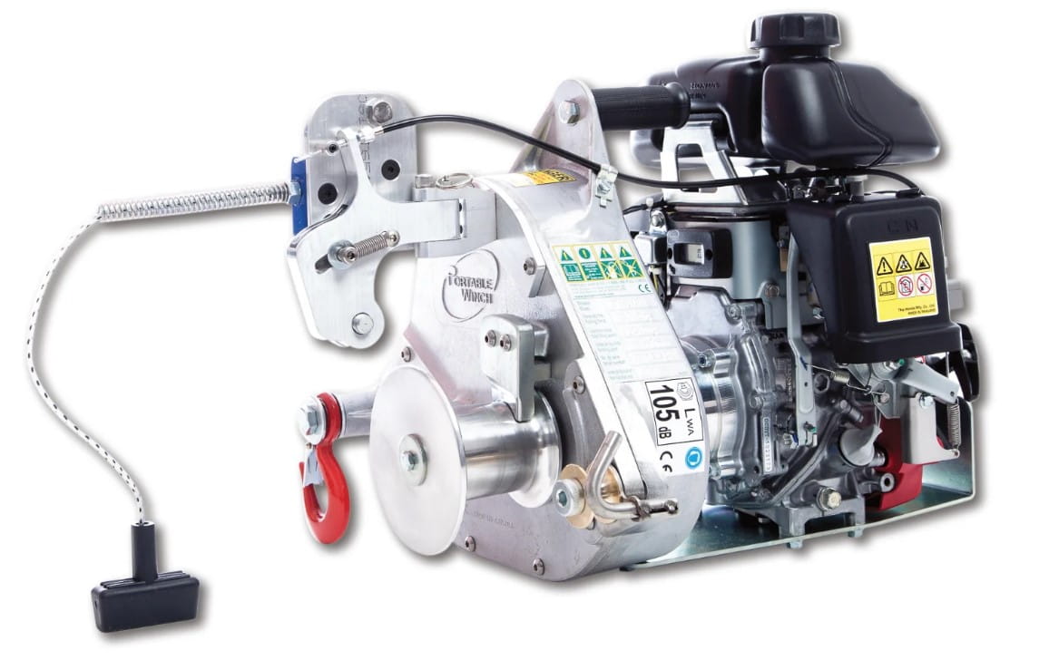 Wyciągarka spalinowa  PCH 1000 jest idealna do prac takich jak prowadzenie kabli lub sprzętu, który trzeba podnieść, tj. (transformatory, cegły, anteny, rusztowania itp.). Ten model napędza niezawodny czterosuwowy silnik Honda GXH50 cm3.